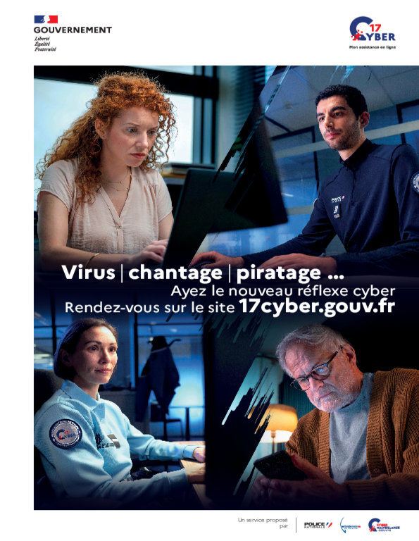La Police nationale, la Gendarmerie nationale et Cybermalveillance.gouv.fr s’associent et lancent le site 17Cyber : 17cyber.gouv.fr/