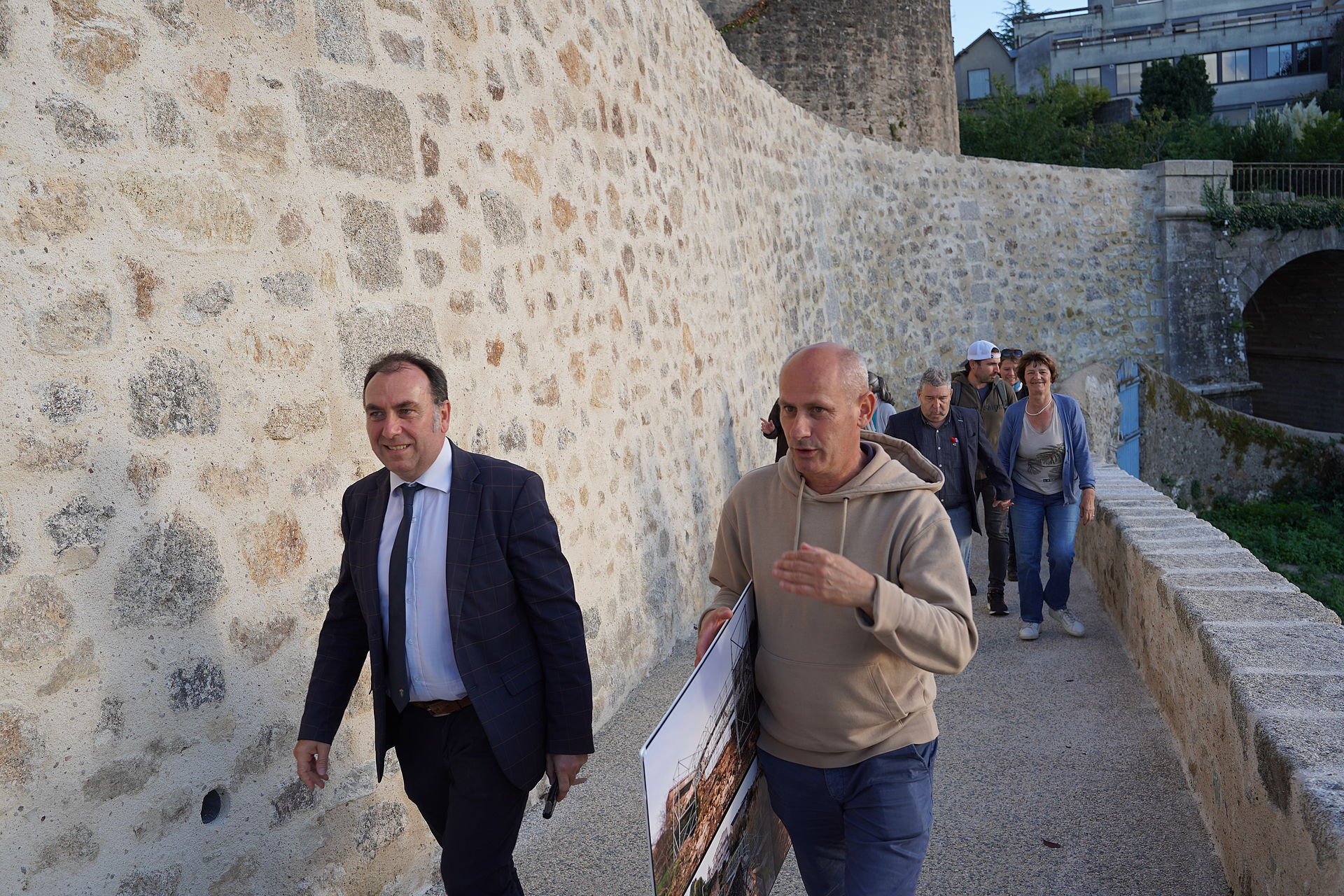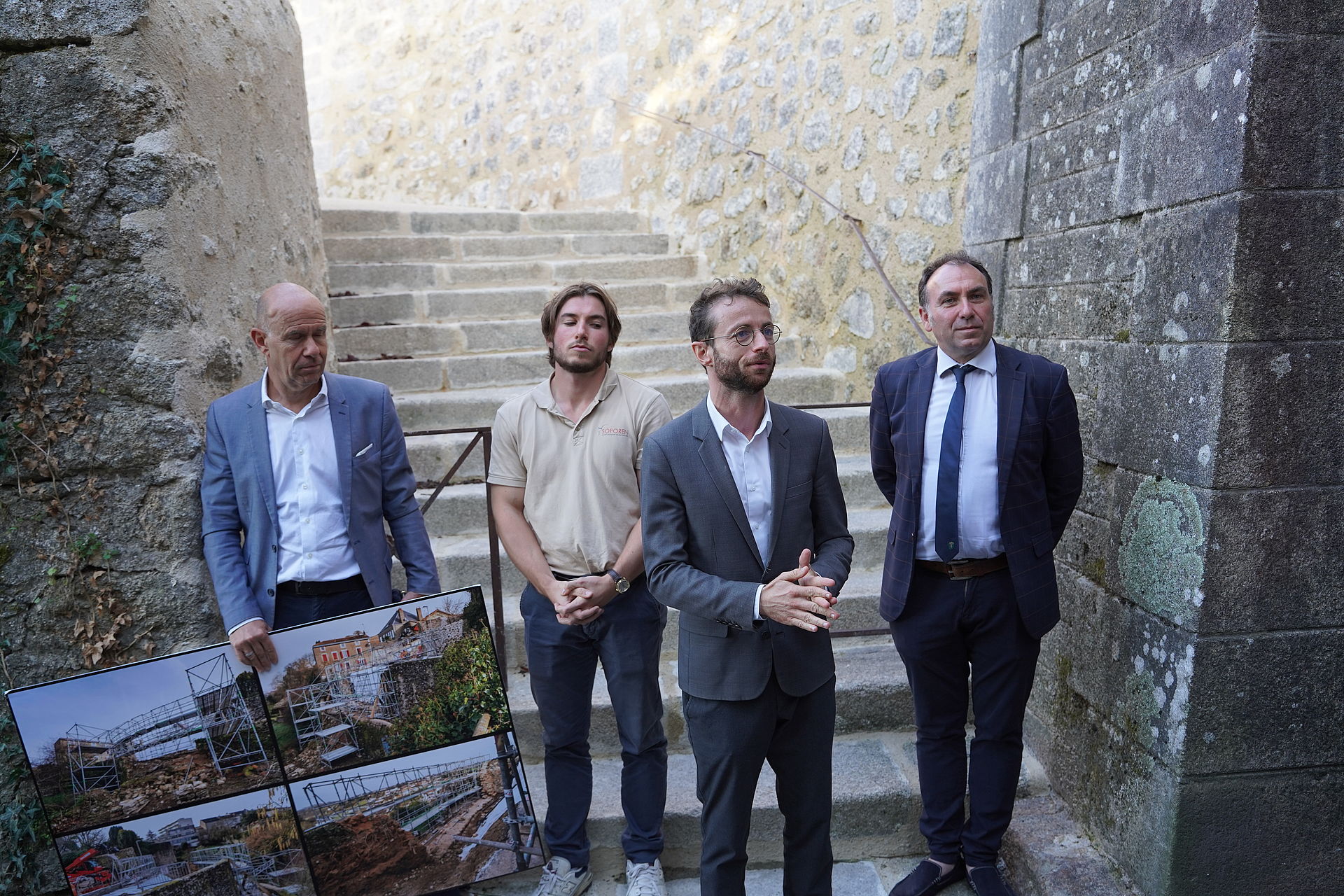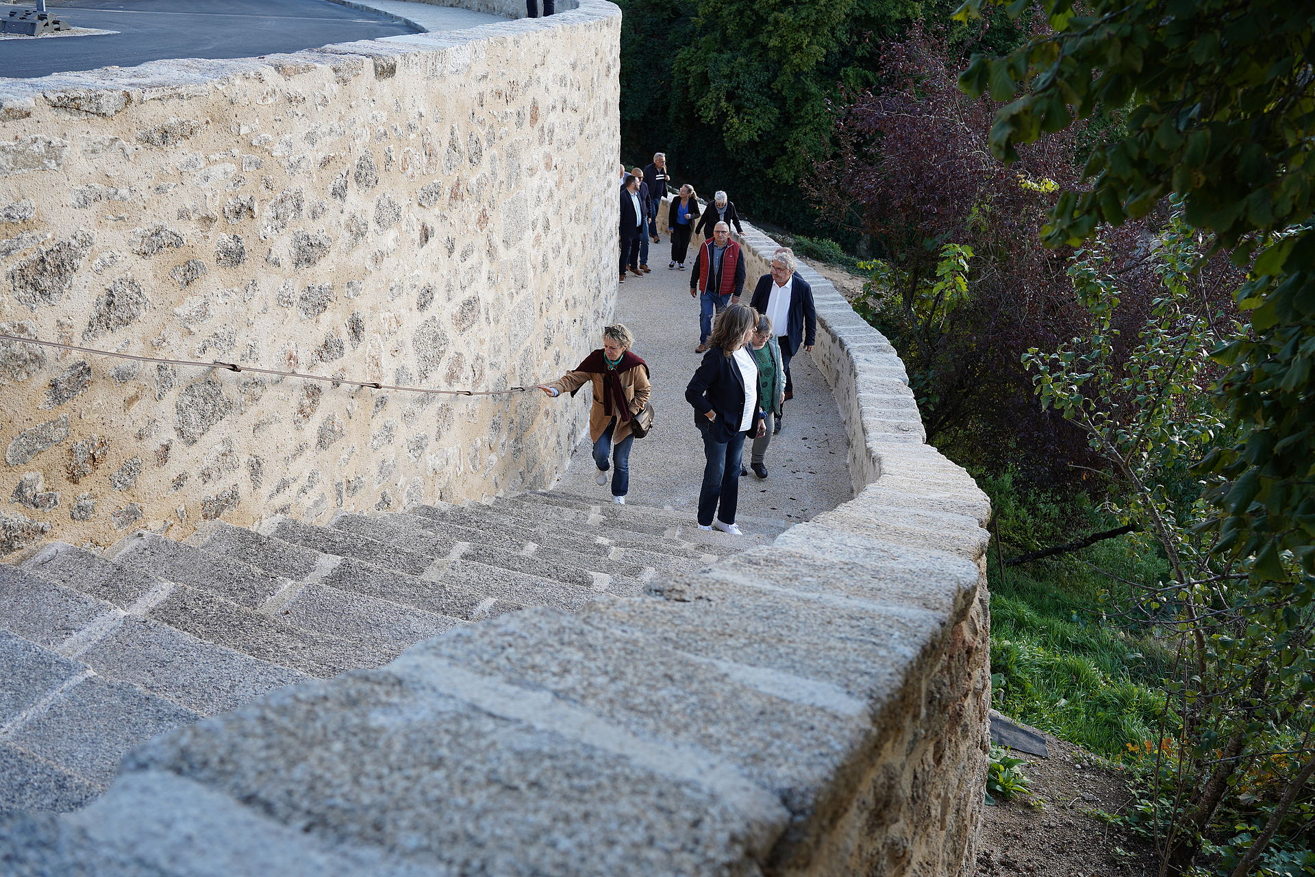 - la reconstruction du mur effondré au niveau du chemin piéton. Les murs, en granit et en schiste, vont être remontés à la chaux, de manière traditionnelle, et seront plus solides. Par l'entreprise Soporen.