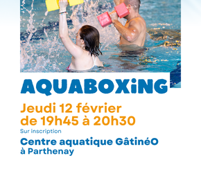 AccueilAgendaAquaboxing Imprimer/Exporter cette page Exporter la page au format PDFPartager cette page par e-mailPartager surFacebookTwitterLinkedInLe12févr.Du 19:45 à 20:30 Centre aquatique GâtinéO Boulevard Georges Clemenceau 79200 Parthenay_Animations vacances hiver, SportAquaboxing Ajouter à mon calendrier Activité intensive en musique de 45 minutes, mélangeant cardio et aquaboxe10 euros la séanceSur inscriptionSélection de la vue© OpenStreetMap contributorsFermerPrécédentRetour à la listeSuivant