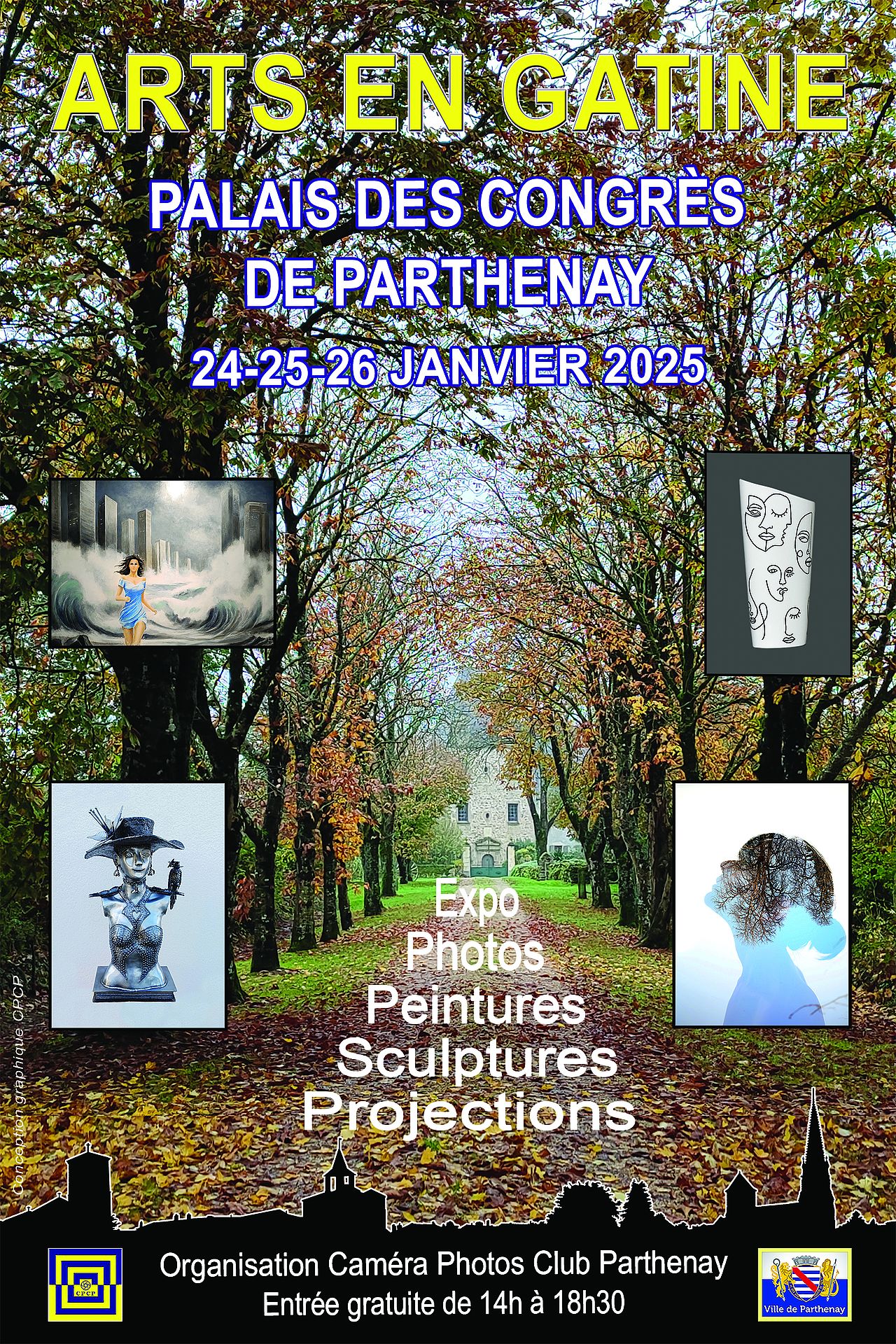 AccueilAgendaArts en Gâtine Imprimer/Exporter cette page Exporter la page au format PDFPartager cette page par e-mailPartager surFacebookTwitterLinkedInDu24janv.à25janv.Du 14:00 à 19:00 Palais des congrès 22 boulevard de la Meilleraye 79200 ParthenayExpositionArts en Gâtine Ajouter à mon calendrier Exposition et photos, peinture, sculpture, projections de films vidéo.Sélection de la vue© OpenStreetMap contributorsFermerPrécédentRetour à la listeSuivant