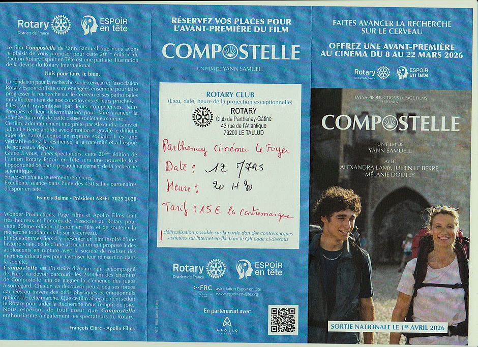 Ajouter à mon calendrierSynopsis : Fred et Adam, un adolescent en rupture, ne se connaissent pas. Pourtant, grâce à une association, ils entreprennent ensemble le pèlerinage de Saint-Jacques-de-Compostelle. Elle cherche à apaiser son passé, il tente de canaliser sa colère et son sentiment d’abandon.