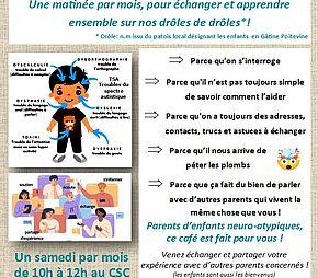 Café entre parents Atypik’Kfé avec la présentation du CRA (Centre Ressource Autisme)
