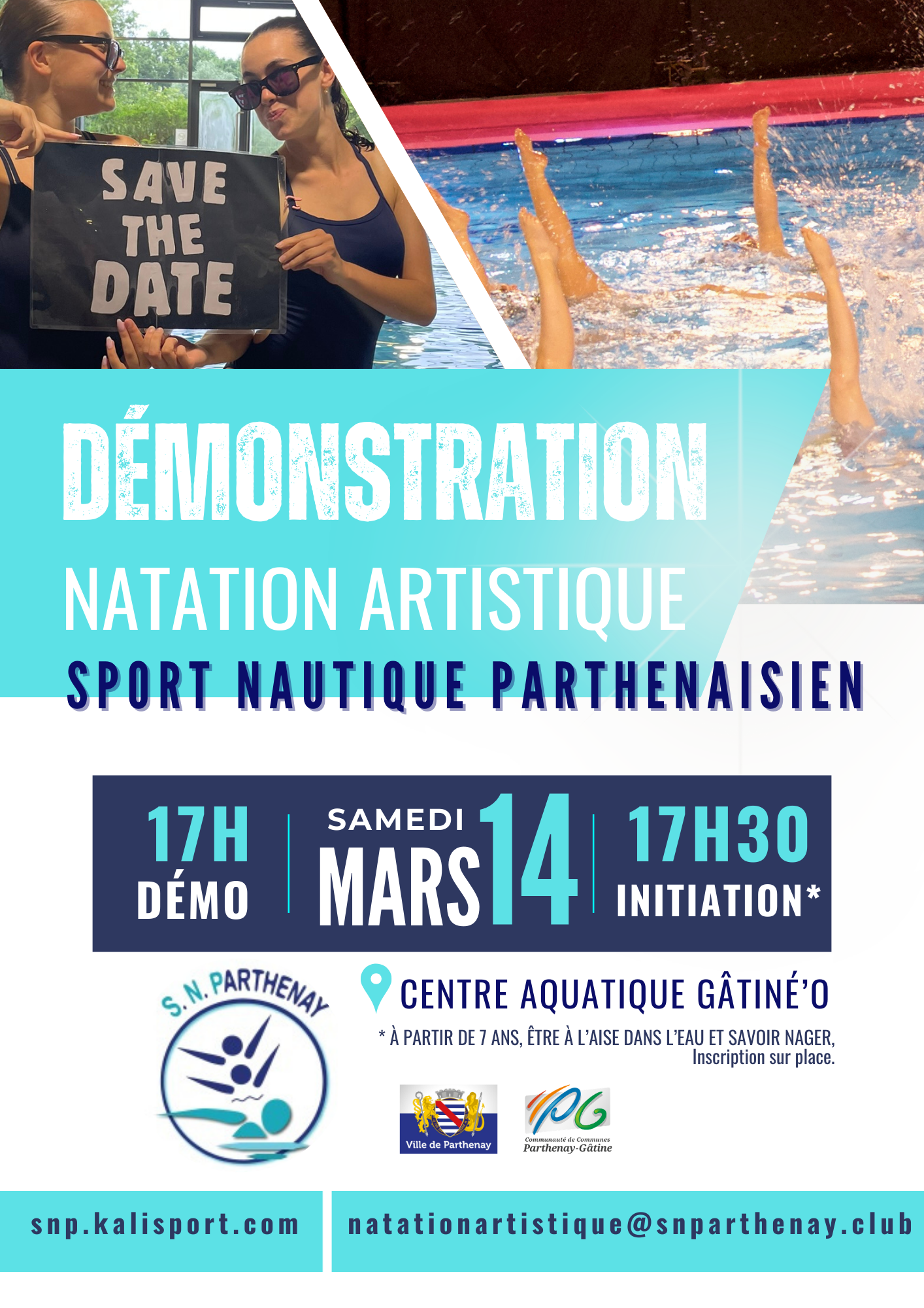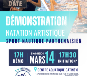 AccueilAgendaDémonstration et initiation de natation artistique Imprimer/Exporter cette page Exporter la page au format PDFPartager cette page par e-mailPartager surFacebookTwitterLinkedInLe14marsDu 17:00 à 18:00 Centre aquatique GâtinéO Boulevard Georges Clemenceau 79200 ParthenaySportDémonstration et initiation de natation artistique Ajouter à mon calendrier Le Sport Nautique Parthenaisien vous propose :Une démonstration de natation artistique à 17h,Une initiation à la natation artistique à 17h30 à partir de 7 ans.Sélection de la vue© OpenStreetMap contributorsFermerPrécédentRetour à la listeSuivant