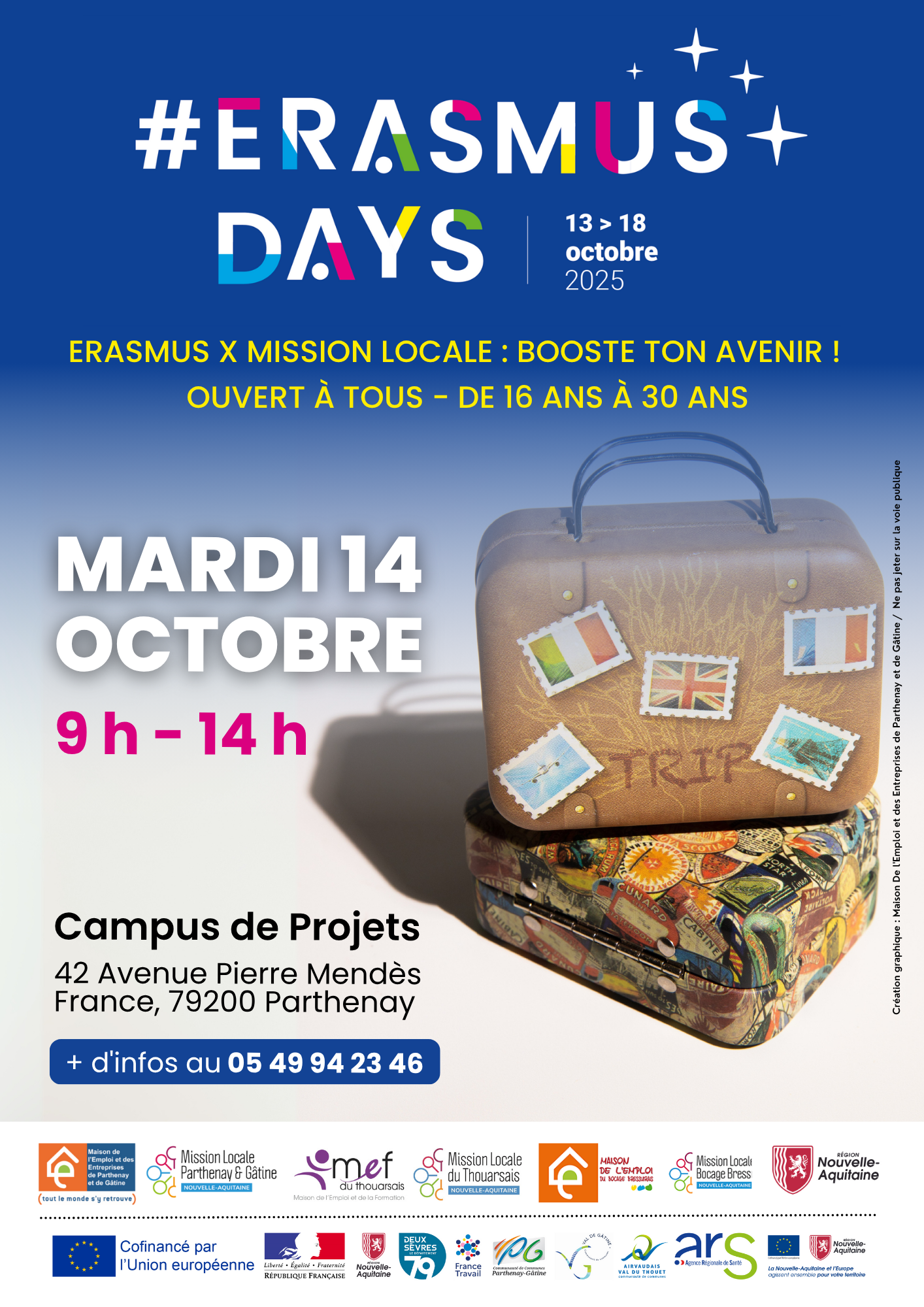 À l’occasion de la Semaine Erasmus Days, Les Maisons de l’Emploi et Missions locales du territoire, vous invitent à une matinée dédiée à la mobilité en Europe.