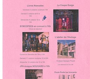 - Samedi 3 octobre : de 10h à 19h,