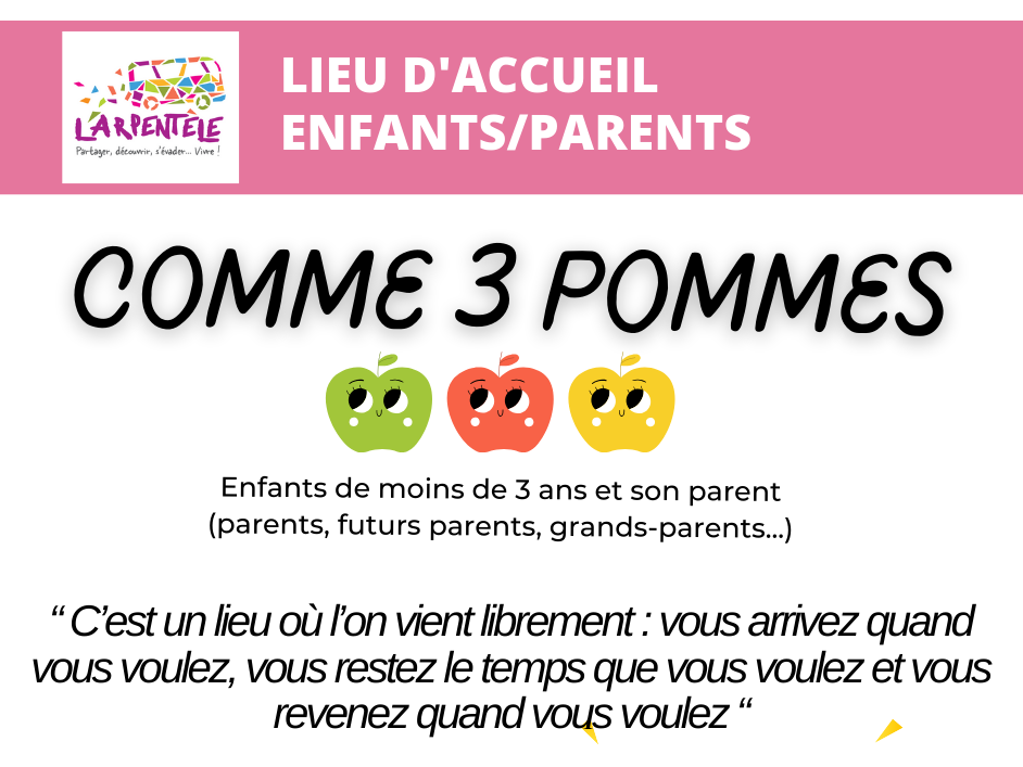 Ajouter à mon calendrierLieu d'Accueil Enfant-Parent - Comme 3 pommes