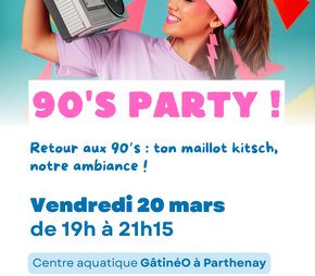 AccueilAgendaSoirée années 90 Imprimer/Exporter cette page Exporter la page au format PDFPartager cette page par e-mailPartager surFacebookTwitterLinkedInLe20marsDu 19:00 à 21:15 Centre aquatique GâtinéO Boulevard Georges Clemenceau 79200 ParthenaySportSoirée années 90 Ajouter à mon calendrier Apporte ton maillot le plus kitsch et flashy et viens t'ambiancer sur les sons des années 90 ! Tarif : 7€Sélection de la vue© OpenStreetMap contributorsFermerPrécédentRetour à la listeSuivant