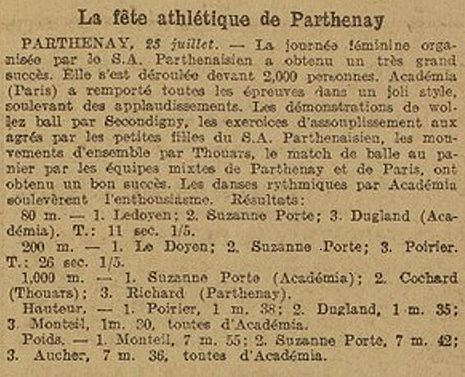 Au programme de cette « journée féminine » : match de volley par l’US Secondigny, de basket et travail aux agrès par le SAP, mouvements d’ensemble par l’US Thouarsaise. Suivent les épreuves d’athlétisme, et à la fin de la journée danses rythmiques et balle au panier mixte.
